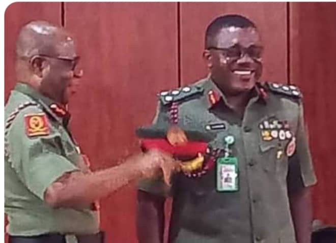 In a beautiful ceremony held at the Army headquarters, Abuja, the Chief of Army Staff, General Waidi Shuaibu, decorated the promoted officers including Major General Adegbe and 77 Colonels who have been promoted to the rank of Brigadier General also.