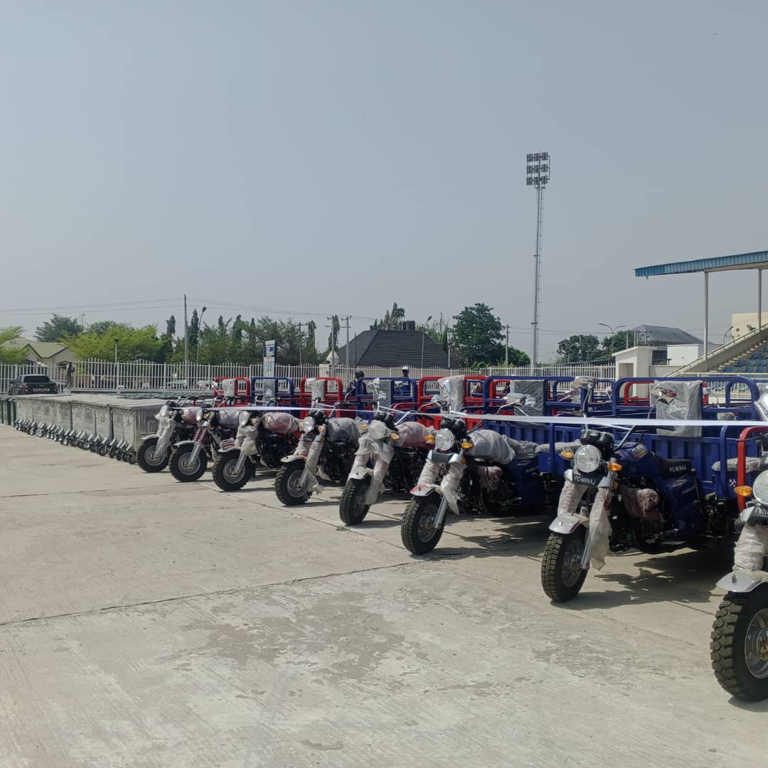The newly commissioned equipment includes a swamp buggy, 23 tractors, one low-bed truck, 20 tipping tricycles, 30 galvanised waste bins, 400 plastic waste bins, as well as rakes and shovels to support community-based waste management efforts.