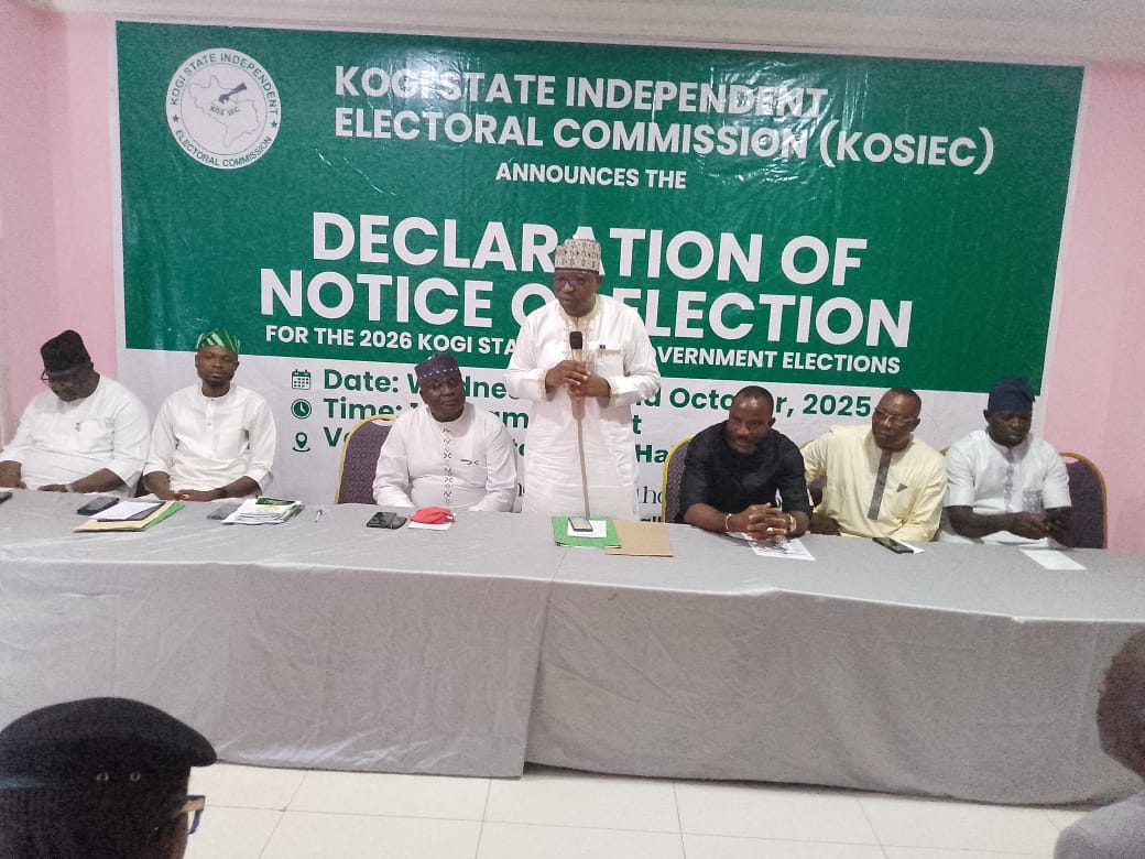 Kogi State Independent Electoral Commission (KOSIEC), has officially announced the notice of election for the 2026 Local Government Elections, set to take place on Saturday, October 17, 2026.