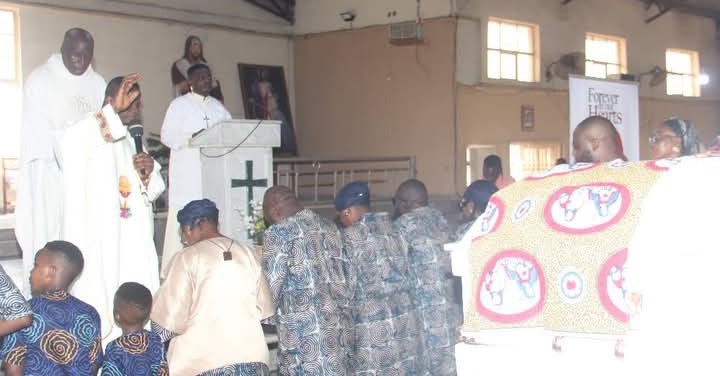 The Catholic Bishop of Lokoja Diocese, Most Rev. Martin Dada Abejide Olorunmolu, led a delegation of other clergymen to the funeral mass